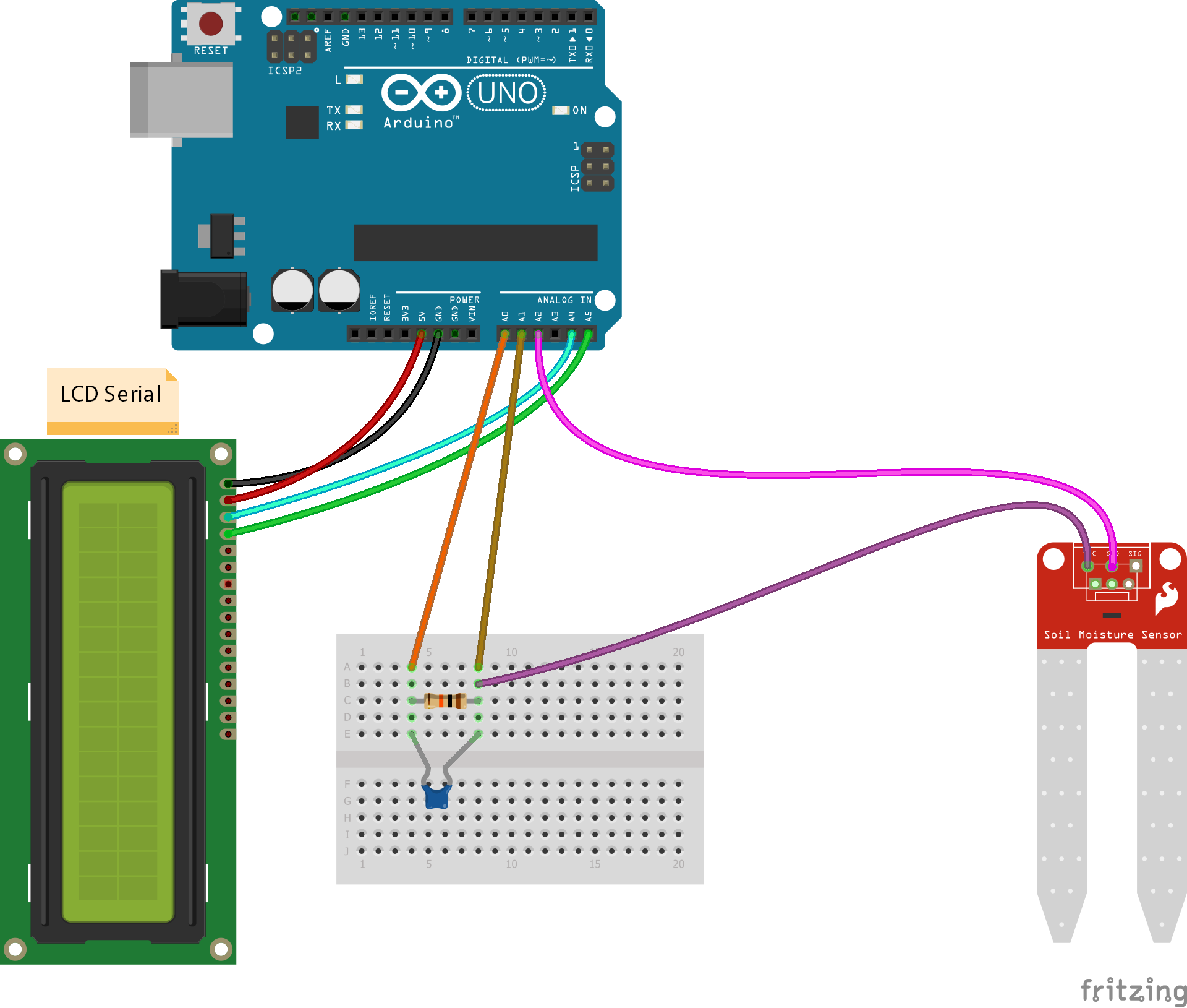 - Al utilizar un divisor resistivo propio, es necesario montarlo en una placa de prototipos para soldadura, en vez de poder utilizar un sensor estándar de conductividad.