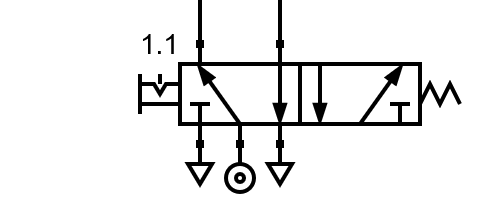 A 5/2 valve, therefore, serves to control two opposite outlets. One of the outlets will always have pressure while the opposite will always have an exhaust connection and will be without pressure.