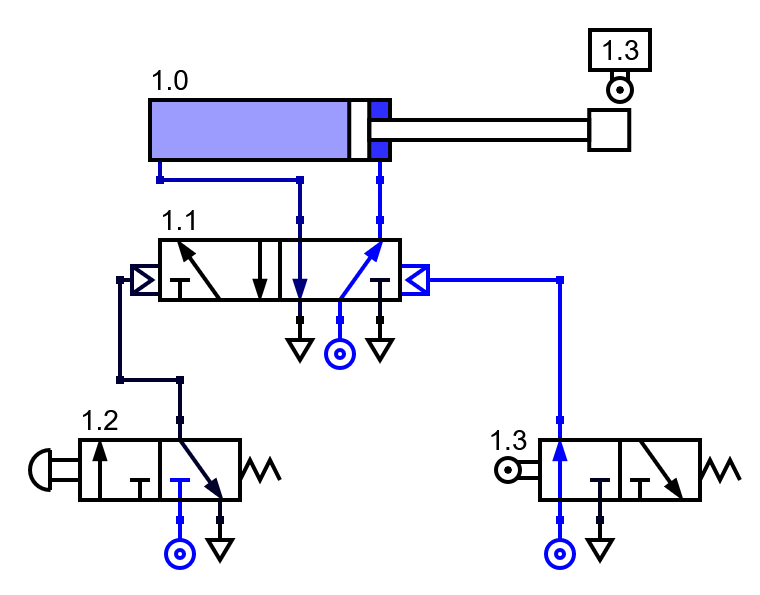 Gracias al pilotaje neumático la propia instalación neumática puede accionar la válvula del cilindro para producir movimientos automáticos. Por ejemplo, una válvula de final de carrera con rodillo neumática puede hacer que el vástago de un cilindro vuelva a entrar una vez que ha detectado que ha salido del todo.