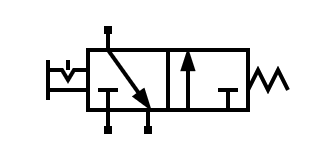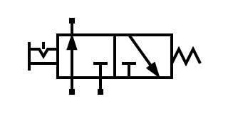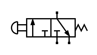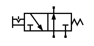 Existen otros tipos de accionamientos como el accionamiento por pulsador con retorno a muelle. Este accionamiento mueve la válvula mientras se está pulsando, pero vuelve a su posición de reposo al dejar de pulsar: